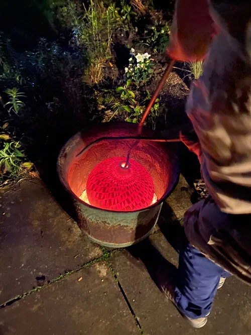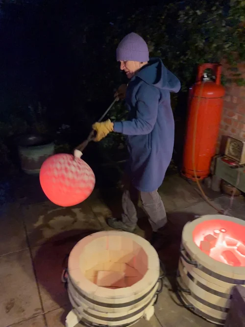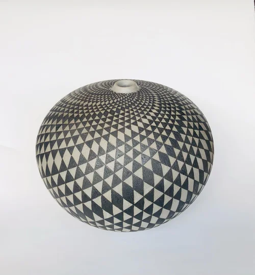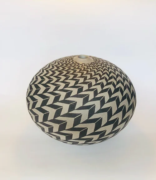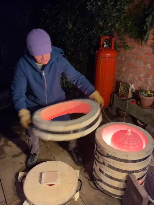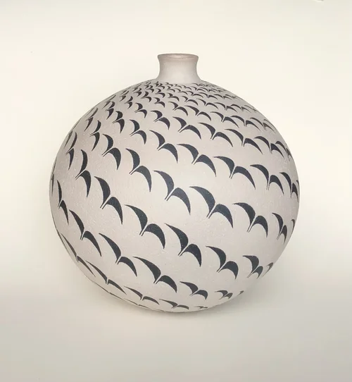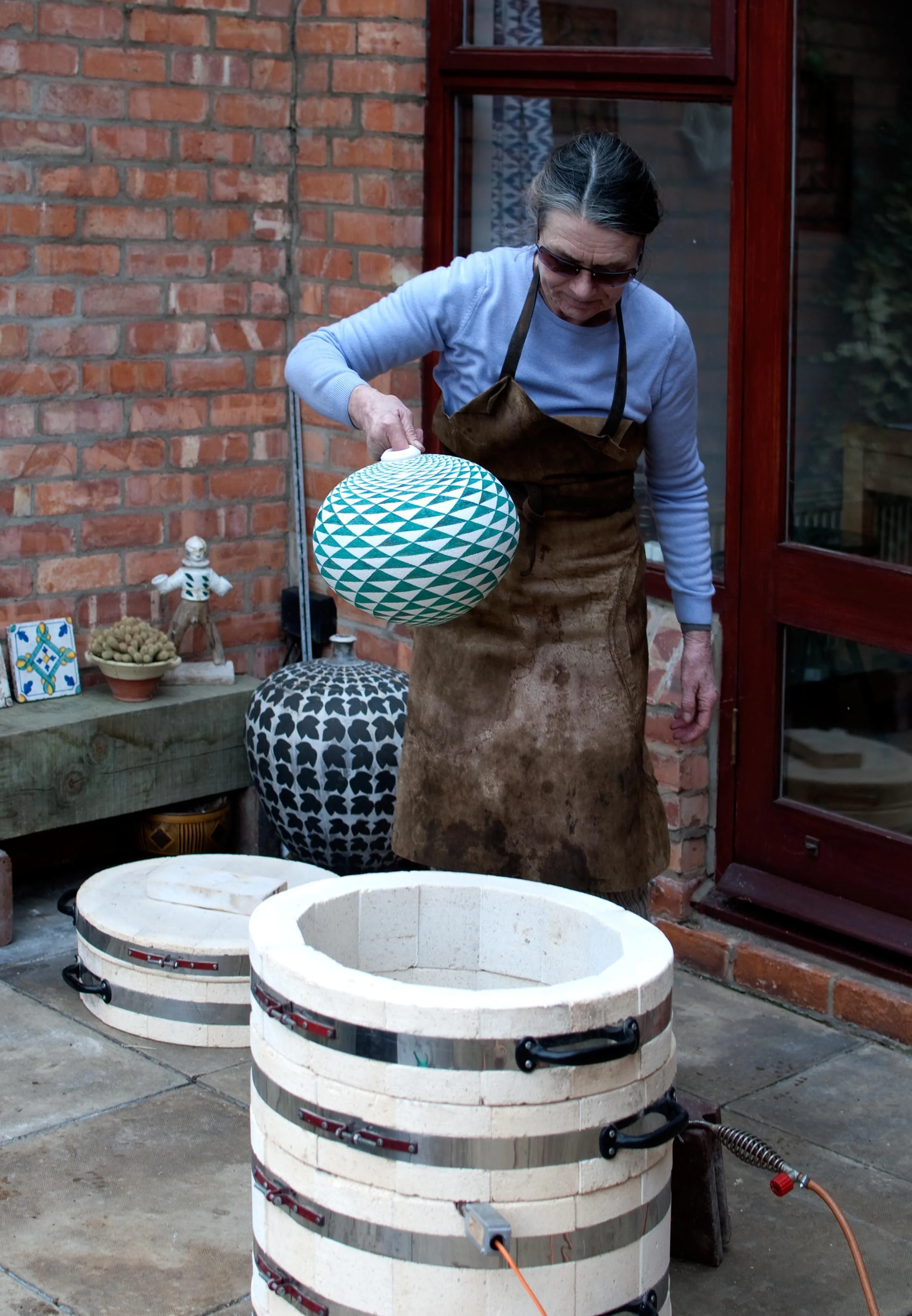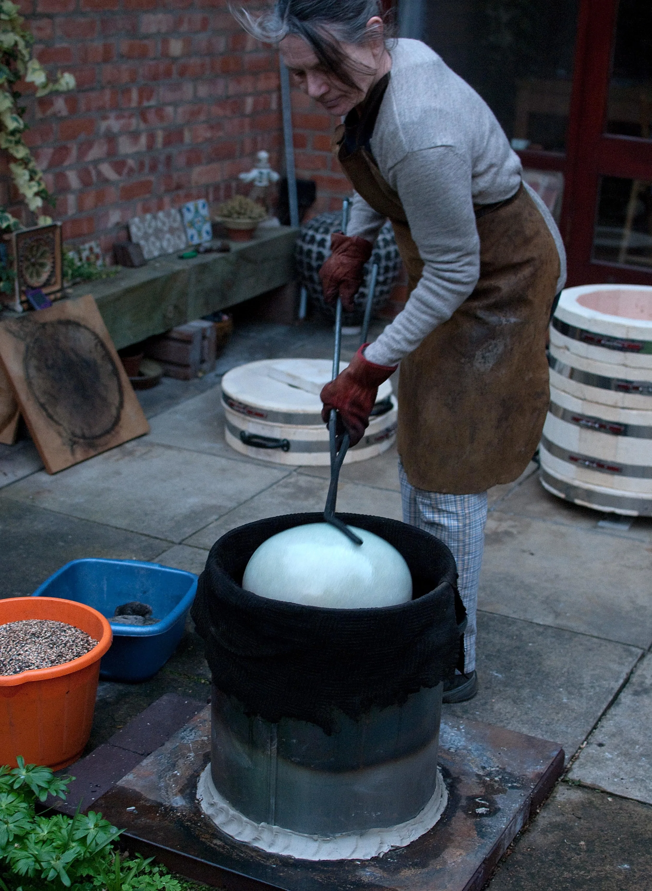 All pieces are raku fired and then completed by smoking in a reduction chamber.